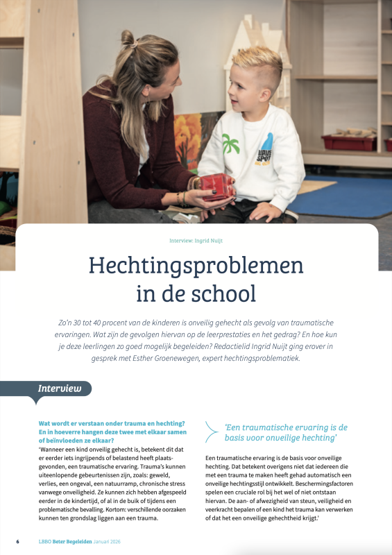 In de januari editie van dit magazine werd ik geïnterviewd door Ingrid Nuijt over hechtingsproblemen in de schoolcontext. In het artikel ‘Hechtingsproblemen in de school’ deel ik waarom gedrag zo vaak wordt gezien als onwil, terwijl het in de kern gaat over een brein dat zich onveilig voelt.