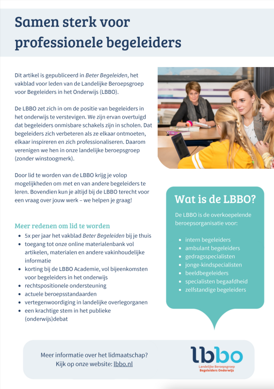 Het artikel is verschenen in januari 2026 in Beter Begeleiden, een uitgave van de LBBO.